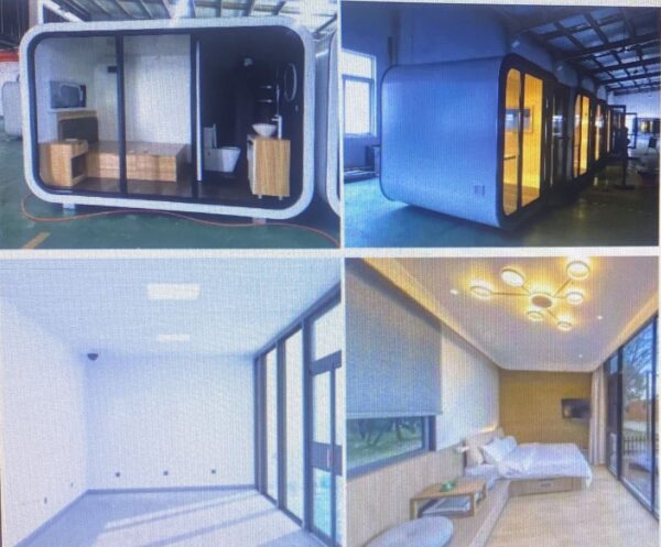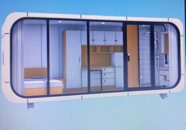 Maison capsule cabine intégrée, maison conteneur capsule spatiale préfabriquée avec chambre et salle de bains